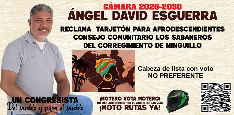 Finalmente quiero dejar constancia por acá de tres iniciativas que ya están en mis alforjas. La primera, instar al Estado colombiano a cambiar nuestra Constitución Nacional, para que al igual que las comunidades indígenas, las afrocolombianas cuenten con dos curules en el Senado, las cuales deben permitir trabajar mancomunadamente con las de la Cámara de Representante, con el fin de poder alcanzar el éxito en la los procesos parlamentarios. La segunda, propugnar y consolidar una plataforma nacional de motociclismo, la cual agrupe a todas las instancias involucradas, tales como autoridades, representantes de la industria, el comercio y por supuesto los usuarios. Y la construcción urgente de las Moto Rutas en las principales vías de las grandes ciudades y en carreteras nacionales, para reducir la alta accidentalidad. La tercera es la búsqueda de la recategorización de la ciudad de Soacha, para lograr convertirla en Distrito Especial Agroindustrial, Cultural y Pedagógico. Ahora bien, la garantía de que estas y otras iniciativas no menos importantes se puedan sacar adelante, es necesariamente proporcional al conglomerado que respalde el día 8 de marzo nuestra lista cerrada. Para ello se debe reclamar el tarjetón de circunscripción especial para afrodescendientes y buscar el recuadro rectangular más oscuro ubicado en el centro, tercera casilla de la sexta línea, marcándolo con cuidado de no salirse del recuadro para que no sea anulado.
