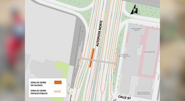 La Secretaría Distrital de Movilidad autorizó el cierre de un carril en la calzada rápida de la Autopista Norte, a la altura de la calle 97, en sentido norte–sur. La medida se implementará desde la medianoche del 16 de marzo y se extenderá por cerca de 40 días debido a trabajos de reforzamiento en el puente peatonal ubicado en este punto de la vía.
