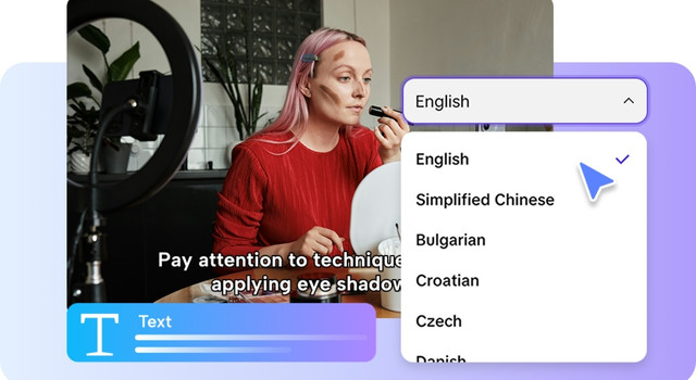 Usa el editor para añadir los toques finales. Edita subtítulos manualmente, añade texto y ajusta tamaño, color y alineación. Aplica filtros, efectos, música de fondo o elimina distracciones del fondo. Da forma a tu folleto animado para que coincida con tu visión de diseño.