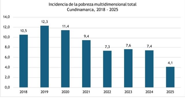 Cundinamarca es el departamento con la menor pobreza multidimensional del país. De acuerdo con el último informe del Dane, en 2025 alcanzamos un histórico 4,1%, lo que representa una reducción de 3,3 puntos frente al 7,4% de 2024.